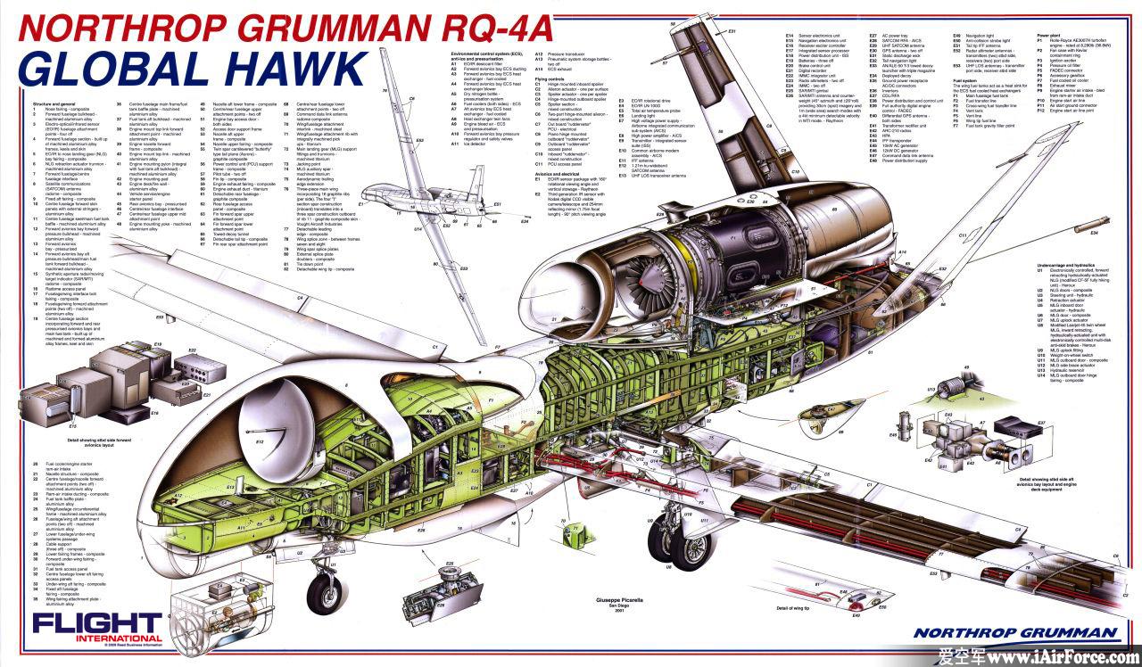 RQ-4 全球鹰 GlobalHawk 无人侦察机 立体剖视图